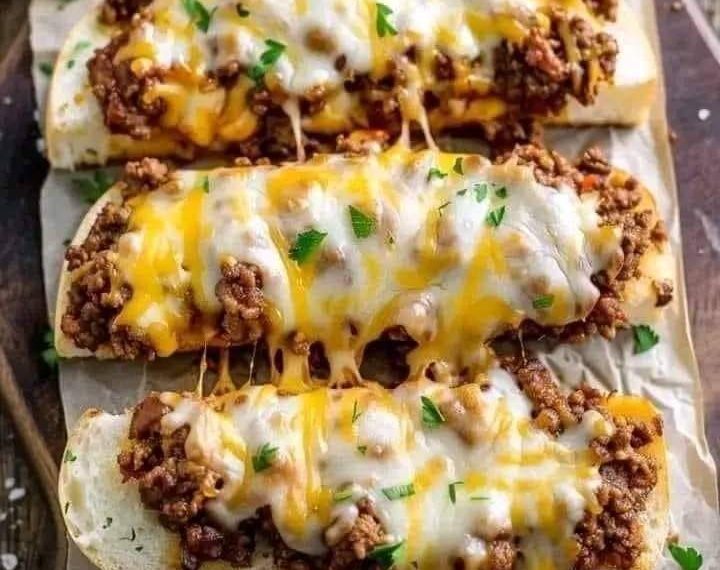 Once the garlic bread is done, remove it from the oven and let it cool slightly. Cut the bread into individual servings and top each piece with a generous portion of the Sloppy Joe mixture.