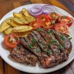 If you’re craving a classic, hearty meal thatโs easy to prepare and full of flavor, this recipe for Grilled Steak with Tomato and Onion Salad and Homemade French Fries is just what you need. Perfect for a satisfying dinner, this combination of tender grilled steak, refreshing tomato salad, and crispy homemade fries will delight everyone at the table. With a few simple ingredients and minimal prep, this meal delivers rich taste without fuss.