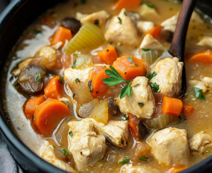 This comforting rustic fusion dish combines tender chicken and an array of vibrant vegetables in a rich, savory broth, creating a hearty main course perfect for any occasion.