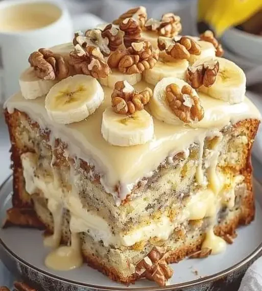 Banana Walnut Cream Cake is a dessert that combines comforting flavors with a creamy texture that’s hard to resist. With ripe bananas, crunchy walnuts, and a smooth cream filling, it’s an easy-to-make dessert that tastes like a special occasion. Serve it at your next gathering, or enjoy it as a sweet treat with family and friends. This cake is sure to become a family favorite, bringing joy to any dessert table!