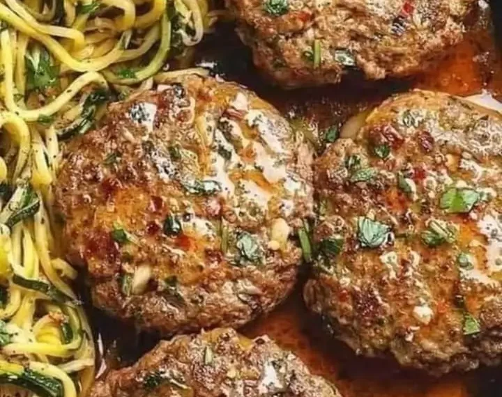 - Return the beef patties to the skillet, nestling them into the sauce. Cover and let them simmer on low heat for 8-10 minutes, or until the patties are cooked through and the flavors have melded together.