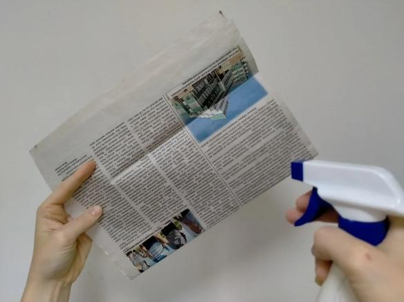 - Prepare the Newspaper: Lightly mist a clean newspaper with water using a spray bottle.