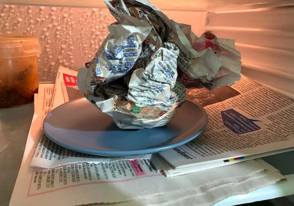 - Crumple and Place: Crumple the dampened newspaper and place it in the freezer compartment.