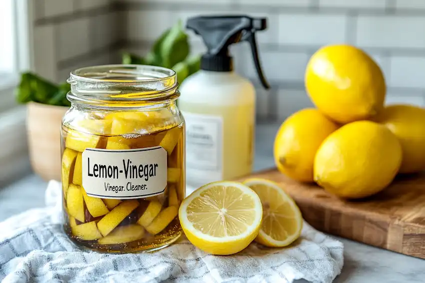 This lemon-vinegar cleaner is perfect for cleaning countertops, sinks, and other surfaces. It’s a natural disinfectant and cuts through grease and grime with ease. The best part? It leaves your home smelling fresh and clean without the use of artificial chemicals. If you’re interested in other ways to harness the power of lemon peels in oil, check out this guide on how to soak lemon peels in oil for even more uses.